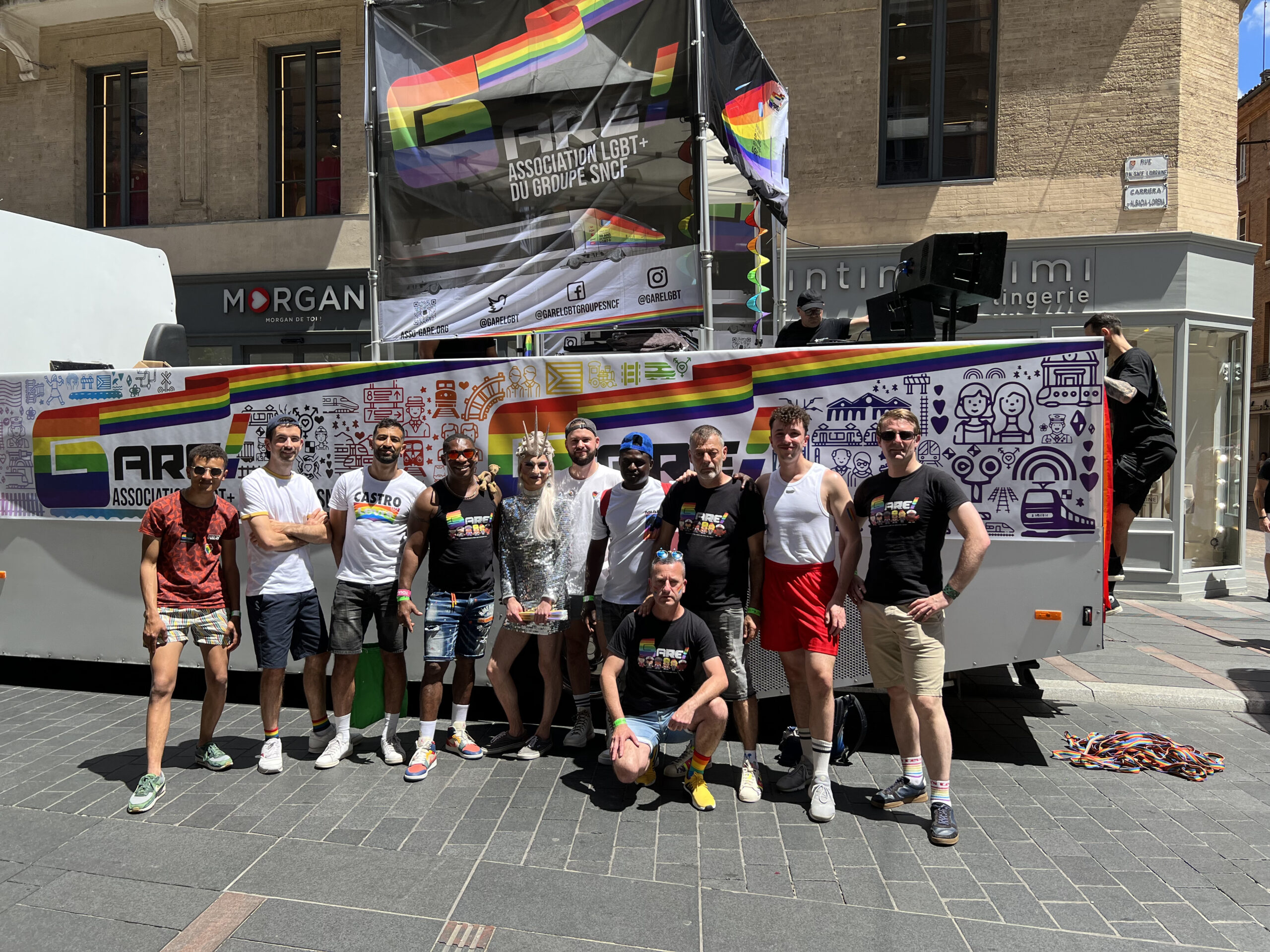 • Toulouse ???????? – 10/06/2023 : Le samedi 10 juin, nous étions présents à Toulouse pour le village associatif et la Marche des Fiertés pour la troisième année consécutive. Nous avons pu défiler fièrement à Toulouse avec notre beau char. Un beau char ne suffisant pas, une bonne musique était nécéssaire. Adrien notre DJ, s’est donc chargé avec brio d’enflammer les rues de la ville rose. Comme souvent, le char était suivi par de très nombreuses personnes. Merci à Pride Toulouse et à tous les participants.