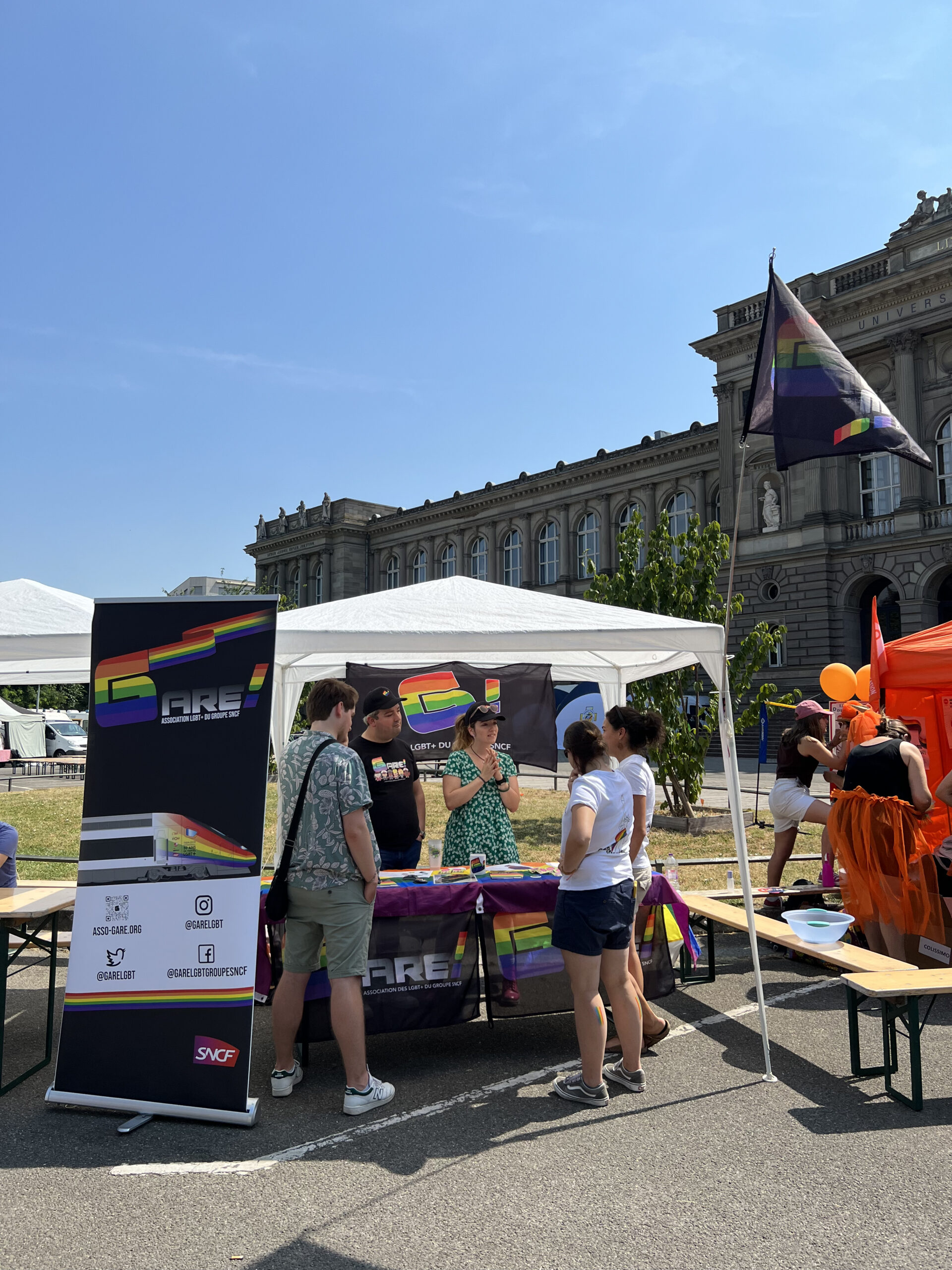• Strasbourg ???????? – 17/06/2023 : Après celle de Toulouse le 10, nous étions à la Pride de Strasbourg le 17 Juin. Cette fois sans char mais toujours avec le même esprit de revendication et de fête, nous avons défilés dans la capitale alsacienne. En amont de cette marche nous avons eu le plaisir de participer au village associatif de Festigays, l’occasion là encore de faire connaitre l’association et de rencontrer nos adhérentes et adhérents en région.