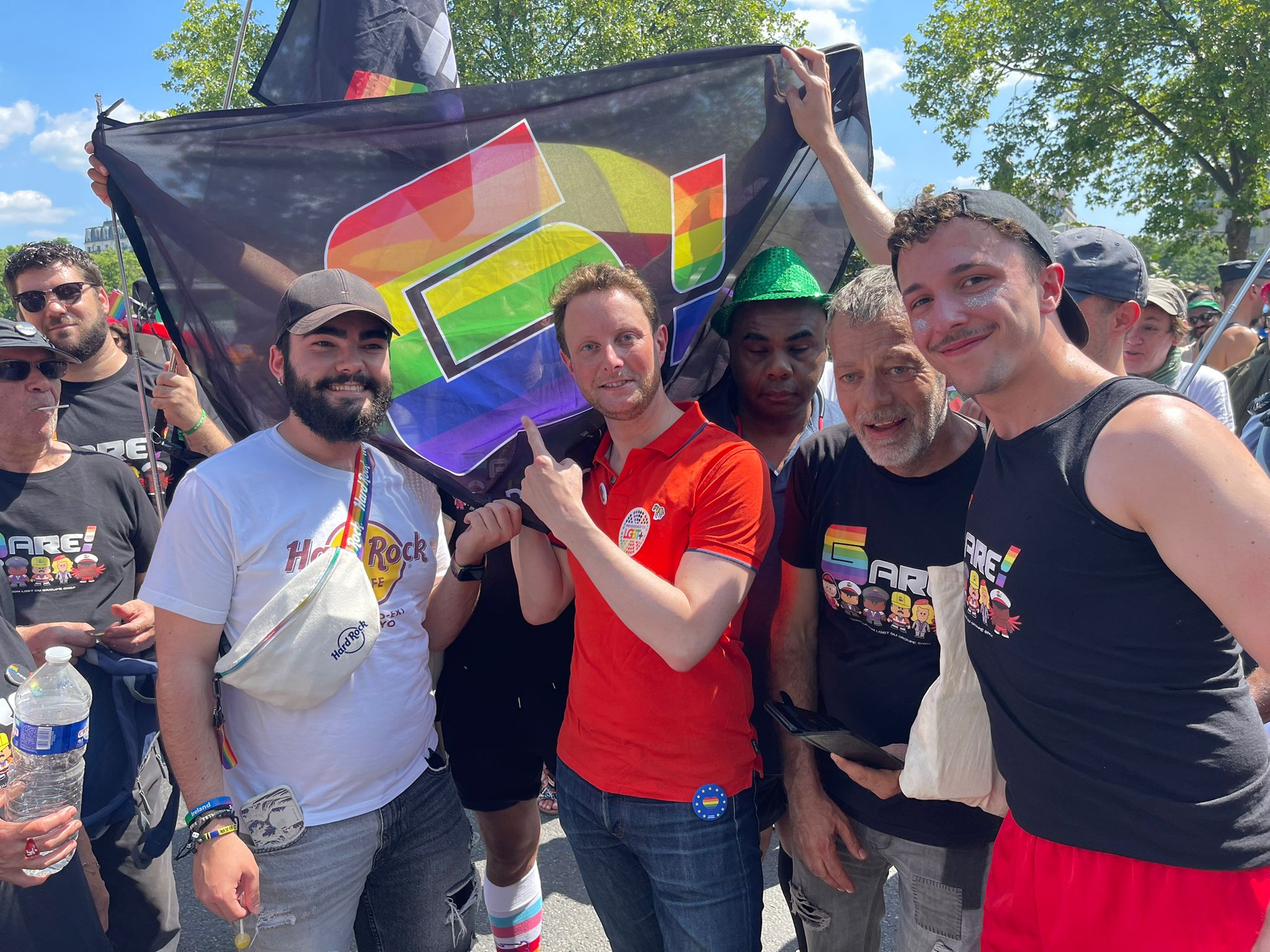 Cette année, l’InterLGBT a fait le choix d’une Pride parisienne sans chars individuels pour les associations. Par conséquent nous participerons à la Marche de Paris sans notre traditionnel char. Afin de se retrouver plus facilement, nous organisons un moment de convivialité pour précéder la marche. Les adhérentes et adhérents de l’association à jour de leur cotisation ont reçu un lien d’inscription dans le newsletter de Juin 2023. Pour cette première marche parisienne sans char, nous avons défilé en compagnie de nos adhérent.e.s. Nous avons eu le plaisir de recevoir le Ministre des Transports Clement Beaune.